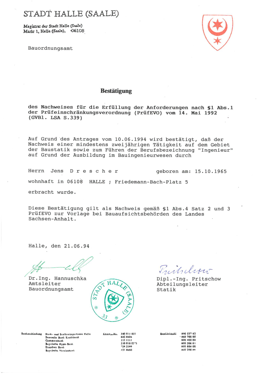 selbständig - Ingenieurbüro Dipl.-Ing. Jens Drescher