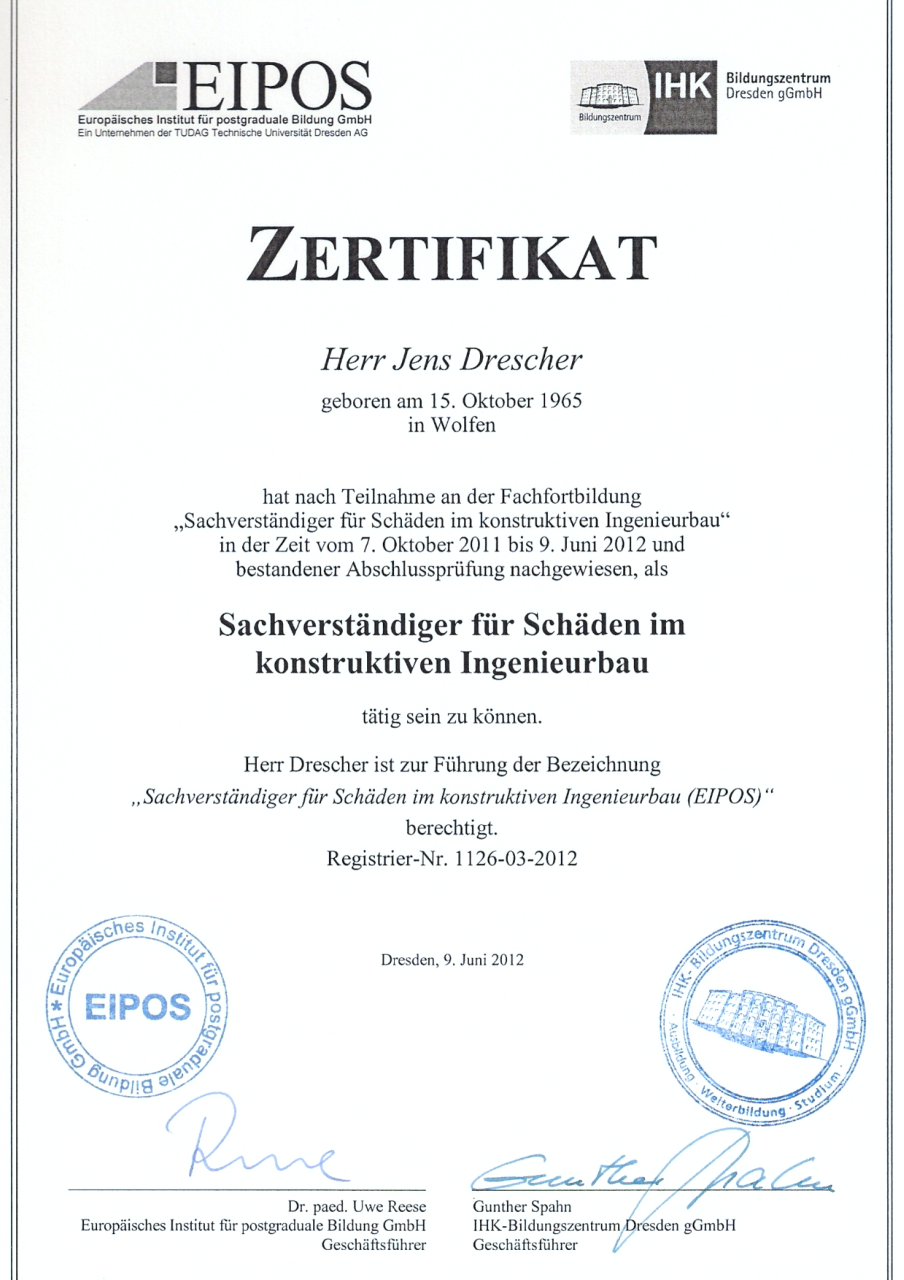 Europäisches Institut für postgraduale Bildung GmbH (EIPOS): Sachverständiger im konstruktiven Ingenieurbau